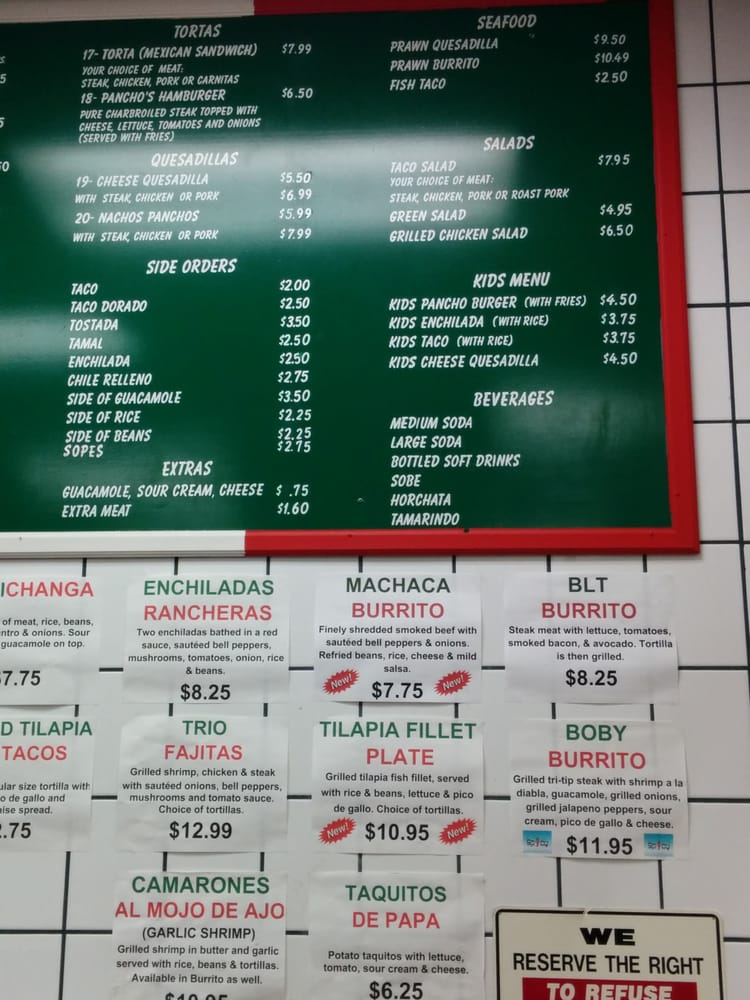 Los Tacos De Pancho is a vibrant Taco spot in Concord, CA, offering a variety of options for both meat lovers and vegetarians. Their menu includes delicious entrees like Carne Asada Fries and Cheese Quesadillas, flavorful Burritos such as the California Burrito and Breakfast Burrito, and tasty side orders like Crispy Tacos and Tamales. Customers rave about the generous portions and friendly service provided by the husband and wife team who run the establishment. With a wide selection of meats and salsas to choose from, Los Tacos De Pancho is a must-visit spot for Mexican food enthusiasts. Don't miss out on their crunchy nachos with cheese sauce and the giant-sized SUPER burrito - a customer favorite. Experience the authentic flavors and ample parking at this popular eatery near the Concord Bart station.